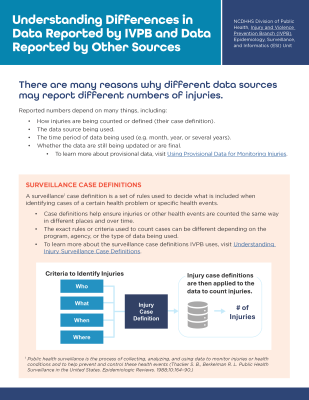 IVPB uses many data sources to understand aspects of an injury event, including risk and protective factors, injury outcomes, and the impacts of injuries.